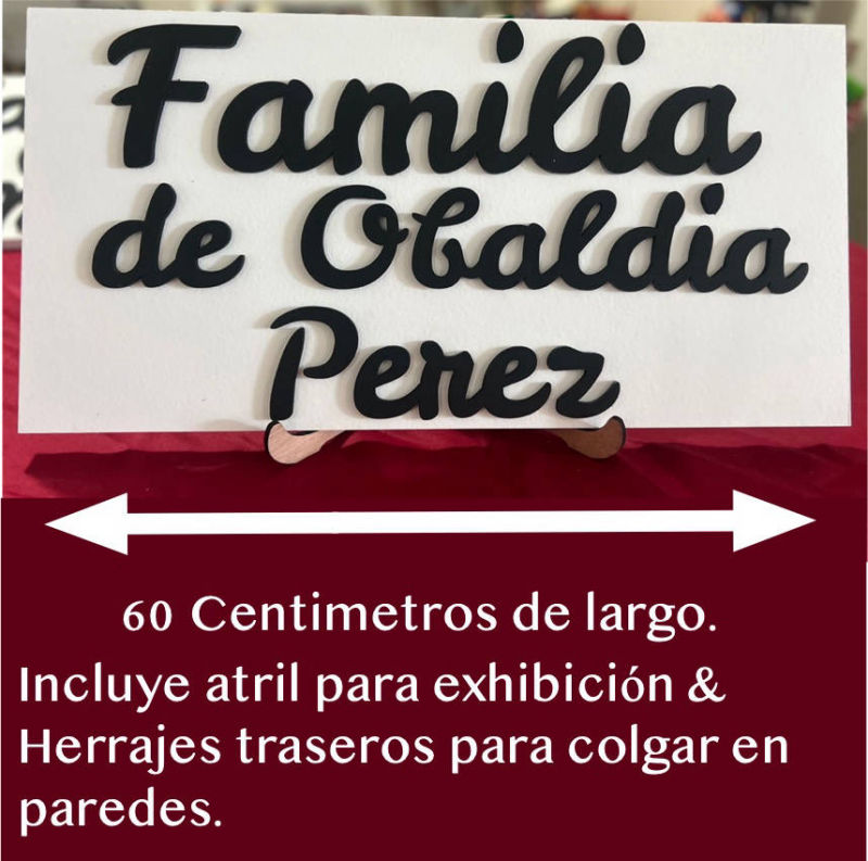 Letras en relieve, tabla de fondo pintados en color contrástante con las letras de relieve.